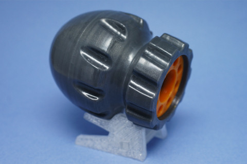 本体はシルバー、エンジン部はオレンジ、台座はクリアのフィラメントを使用、