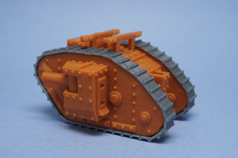 3Dプリンタ出力モデル第55号、マーク1戦車(全長 5.5cm)