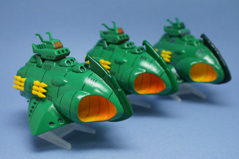 パネルラインと艦橋窓のリペイント再チャレンジ(一番左が最新)