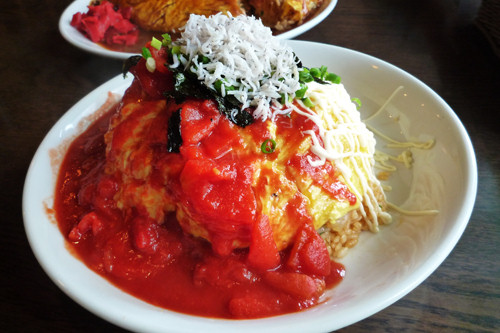 今回は奈良オムライス、ソースはトマトとマヨネーズの2色、