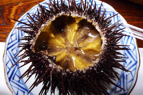 お寿司屋さんでのっかってるのより小さいけど、トゲがウニウニ動いてるのは格別。